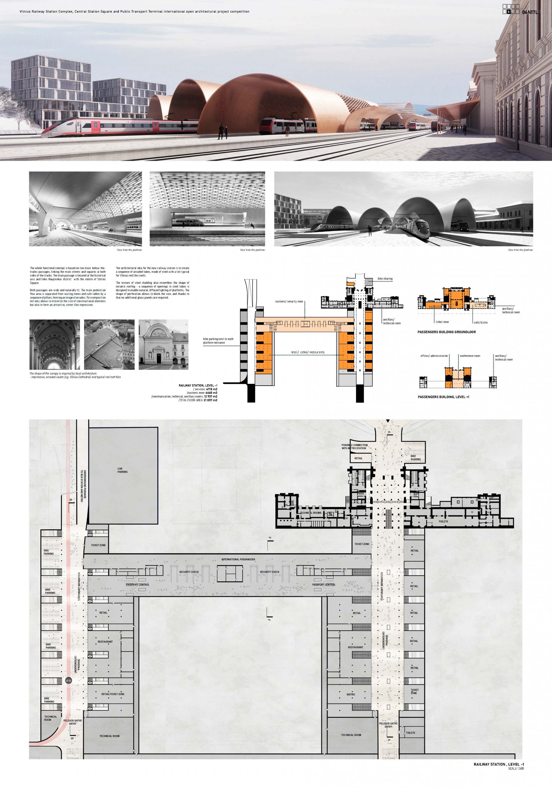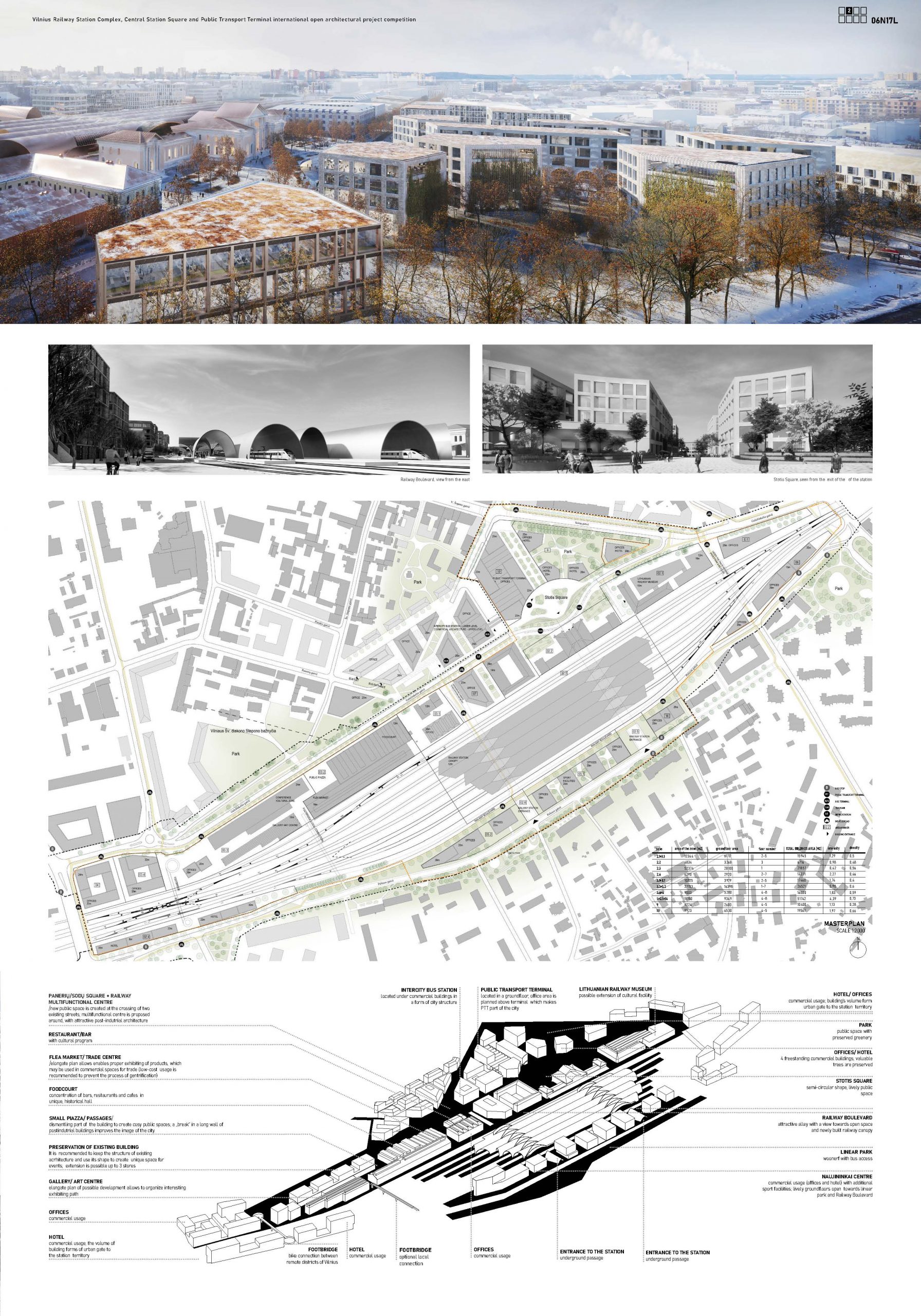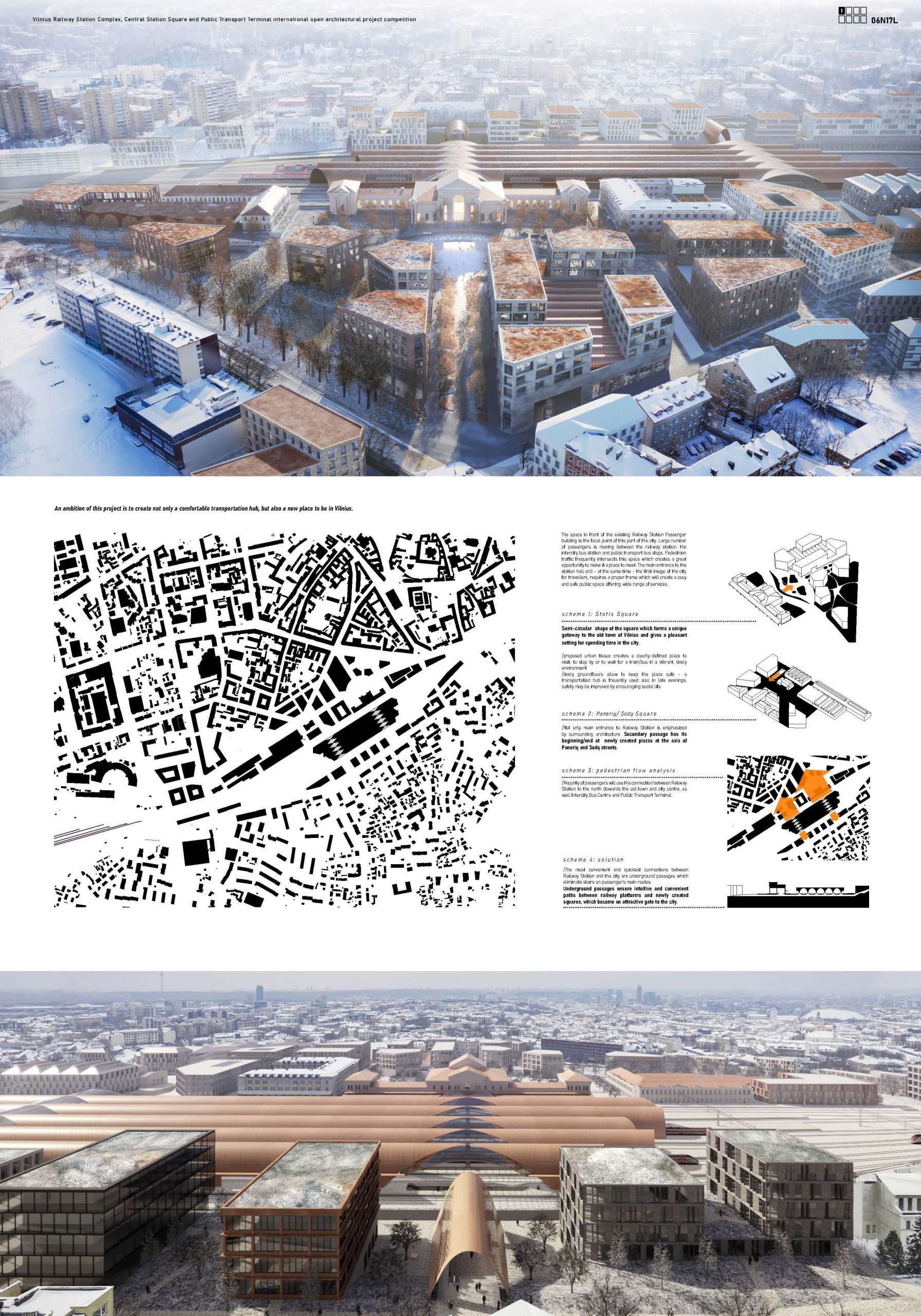 With this project we propose a semi-circular shape of the square forming a unique gateway to the old town of Vilnius and providing a pleasant setting for experiencing the city.