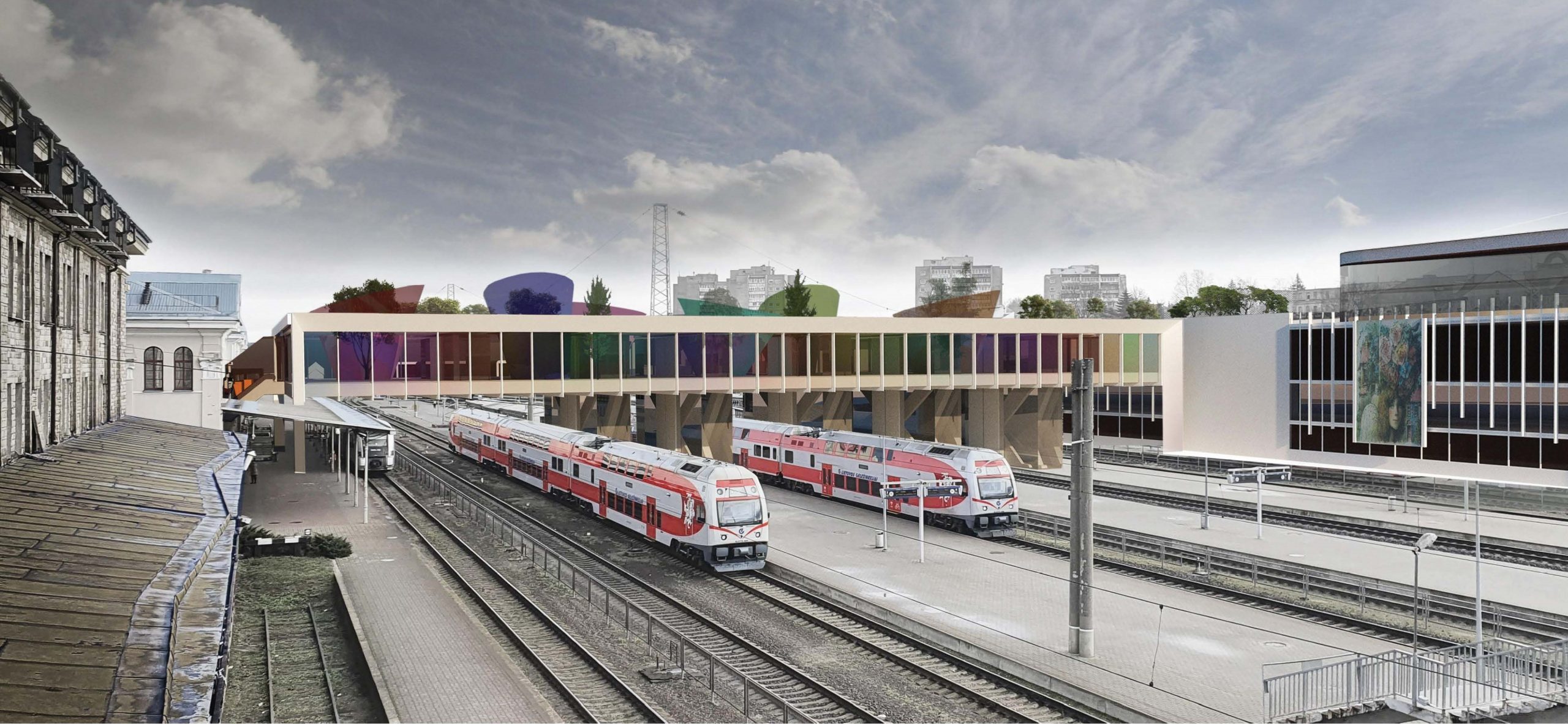 The project proposes a compositional and functional scheme with the main (centers of attraction) and subordinate objects. The main objects include Stotis Square, the buildings of the existing and new terminals of the Vilnius railway station, as well as the Naujininkai Center. Other buildings surround this significant attraction and develop an environment for its service and cultural and commercial activities.