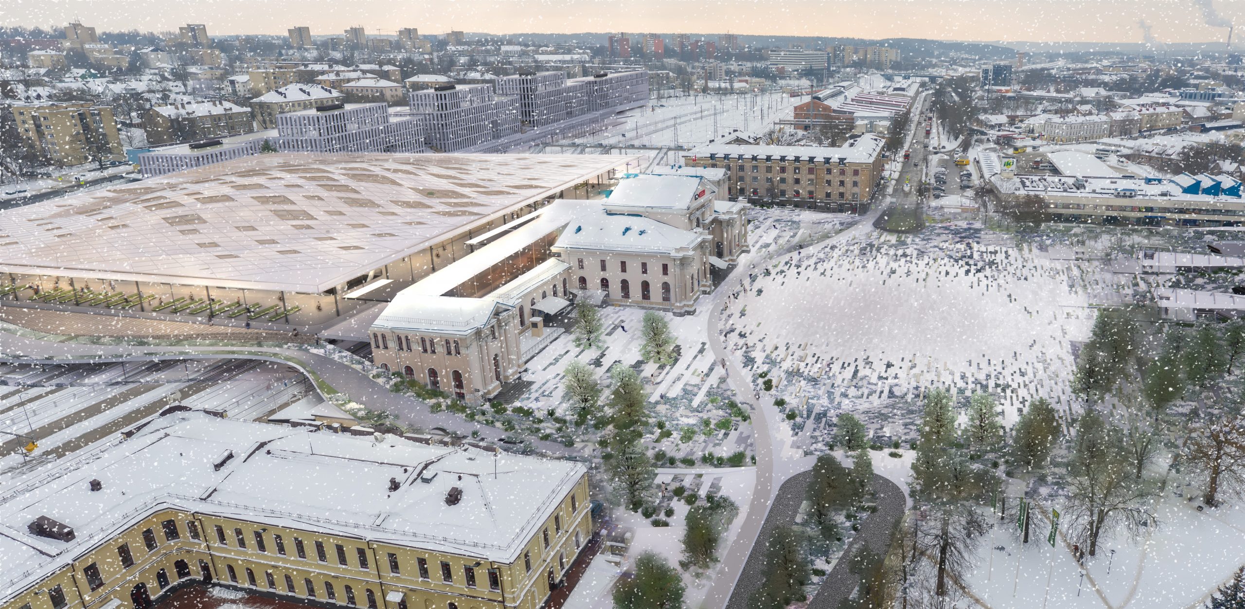 The plan to redevelop the old station building and surrounding is an effort to reconnect it to the city. Our design philosophy “form follows flow” proposal and vision aims to unite and regenerate the urban life in this part of the city. Starting with a single “floating roof” shaped by the “flow of people and public life” linked with a Green bridge connecting both sides of the track that will integrate new public programs into the site. A continuous thin timber sheet roof, gently lifted at its four corners above the track, wrapping the rail infrastructure in multiple layers of public program and urban spaces.
