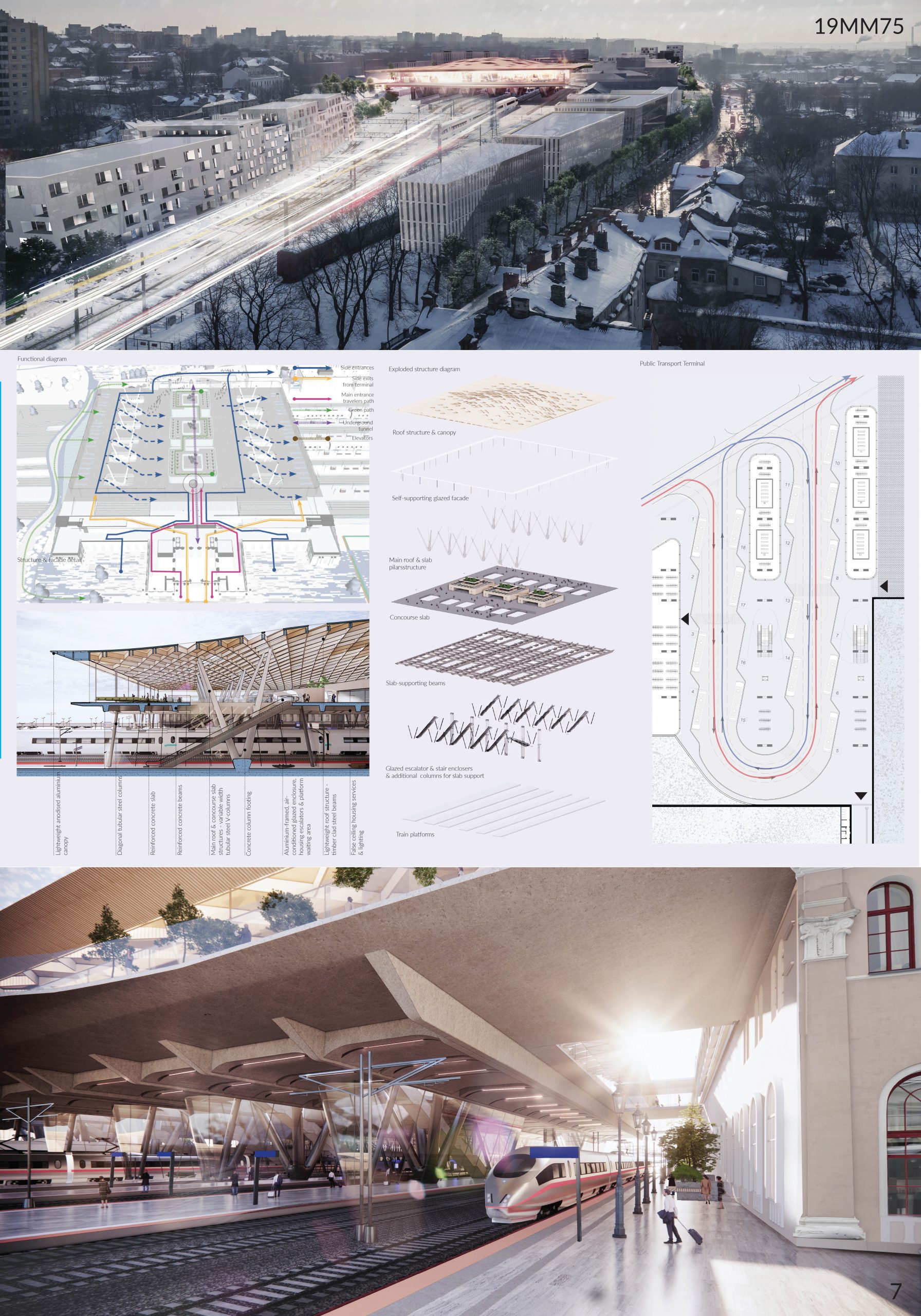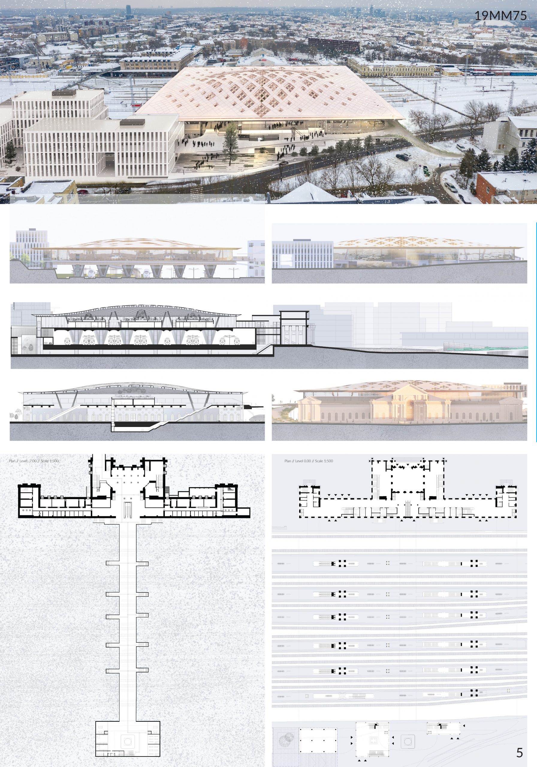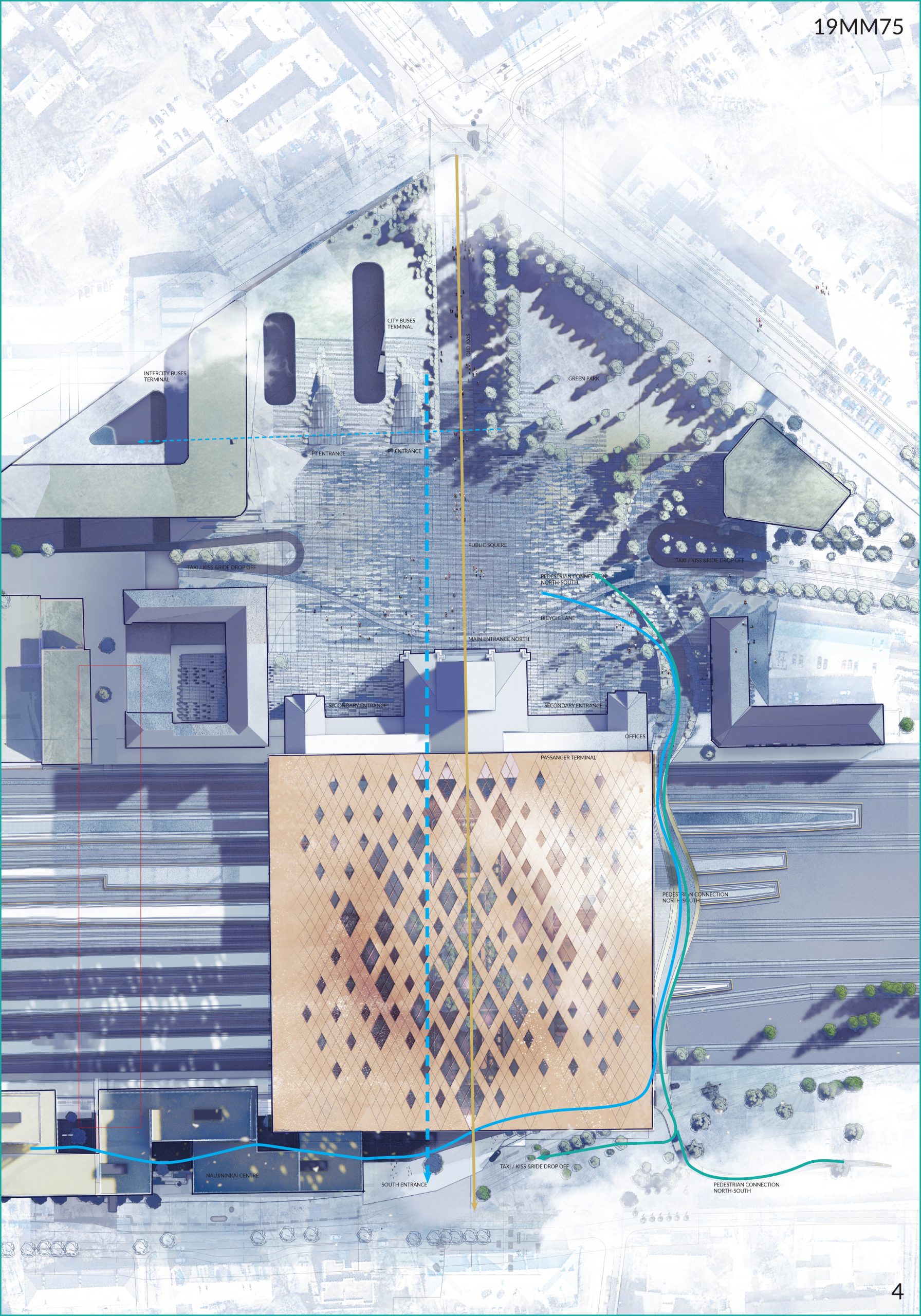 The plan to redevelop the old station building and surrounding is an effort to reconnect it to the city. Our design philosophy “form follows flow” proposal and vision aims to unite and regenerate the urban life in this part of the city. Starting with a single “floating roof” shaped by the “flow of people and public life” linked with a Green bridge connecting both sides of the track that will integrate new public programs into the site. A continuous thin timber sheet roof, gently lifted at its four corners above the track, wrapping the rail infrastructure in multiple layers of public program and urban spaces.