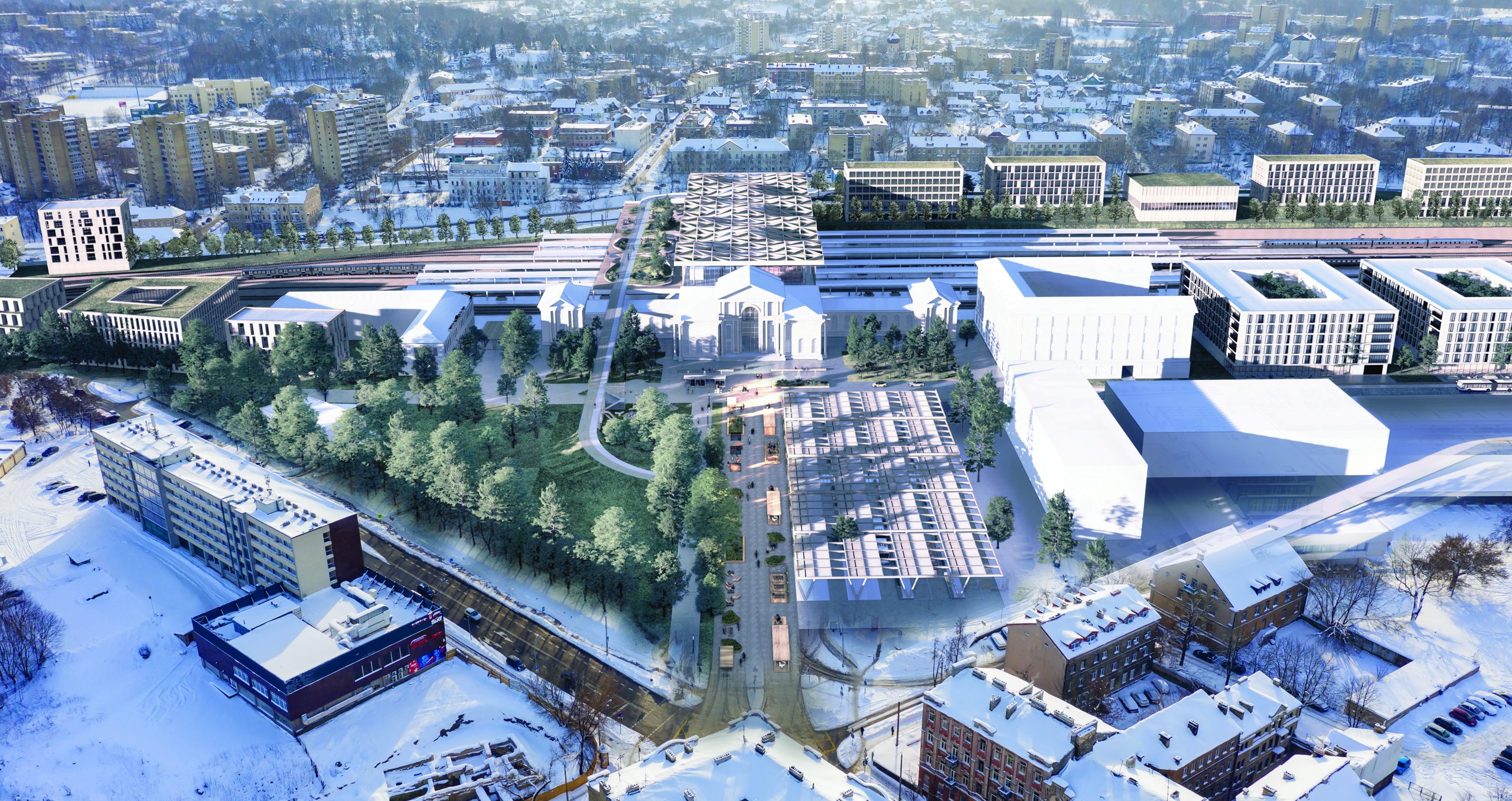 Essential to the achievement of these objectives is the integration of the Railway Station, Bus Station Central Square and adjacent spaces, building and other objects into a single and coherent urban assembly. By doing so, both sides of the railway station (north and south) would be connected in a way that would be particularly friendly for pedestrians, cyclists and people who need and/or want to spend time here. An integral part of the project would be its extensive enrichment of the natural elements present there. The newly introduced natural elements follow the elements of nature typical for Lithuania.