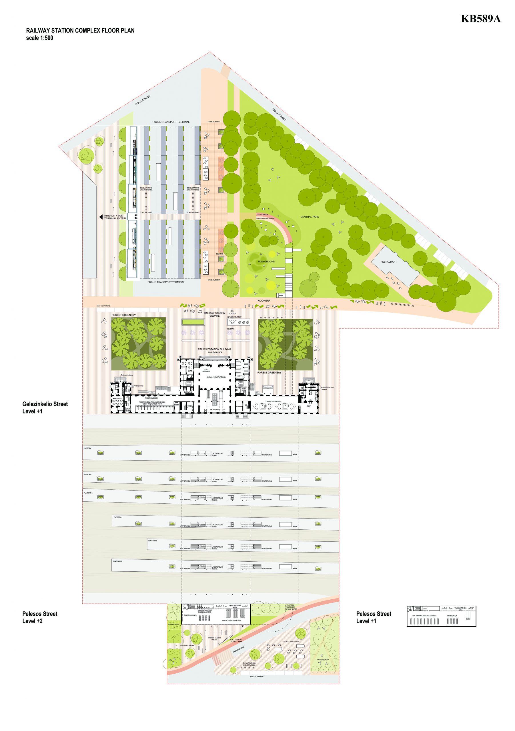 Essential to the achievement of these objectives is the integration of the Railway Station, Bus Station Central Square and adjacent spaces, building and other objects into a single and coherent urban assembly. By doing so, both sides of the railway station (north and south) would be connected in a way that would be particularly friendly for pedestrians, cyclists and people who need and/or want to spend time here. An integral part of the project would be its extensive enrichment of the natural elements present there. The newly introduced natural elements follow the elements of nature typical for Lithuania.