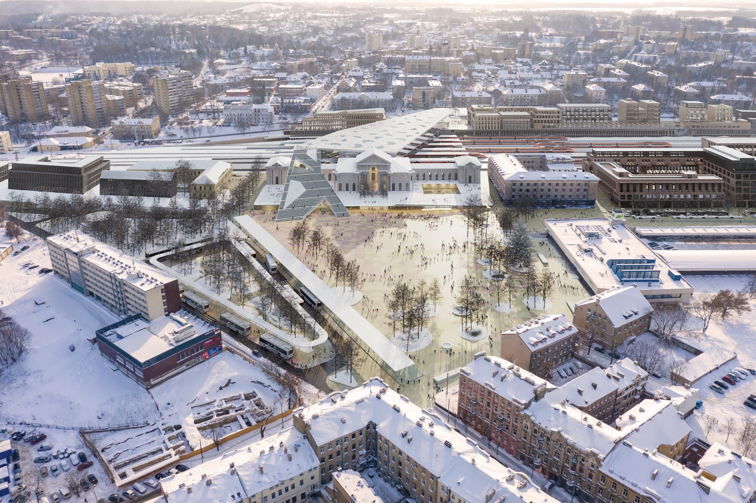 Our proposal is a contemporary intervention that bridges both sides of the city. We aim to embrace the tracks rather than seeing them as the divide of the city. We aim for a renewed balance between the future and the past. This ambition results in a strong image of renewal for the station district. The station plaza becomes one of the city’s most important public spaces with easy access to mobility, the Rail Baltica network and to the world. In order to merge the proposed plans together with the existing context, redevelopment is based on the existing situation rather than starting from a blank page. That way, not only the new visitors and residents can enjoy the new area but instead join the current contingent in the process of change. After an intensive planning and design phase, we are pleased to deliver this proposal for the Vilnius Railway Station Complex, Central Station Square and Public Transport Terminal competition for your enjoyment.