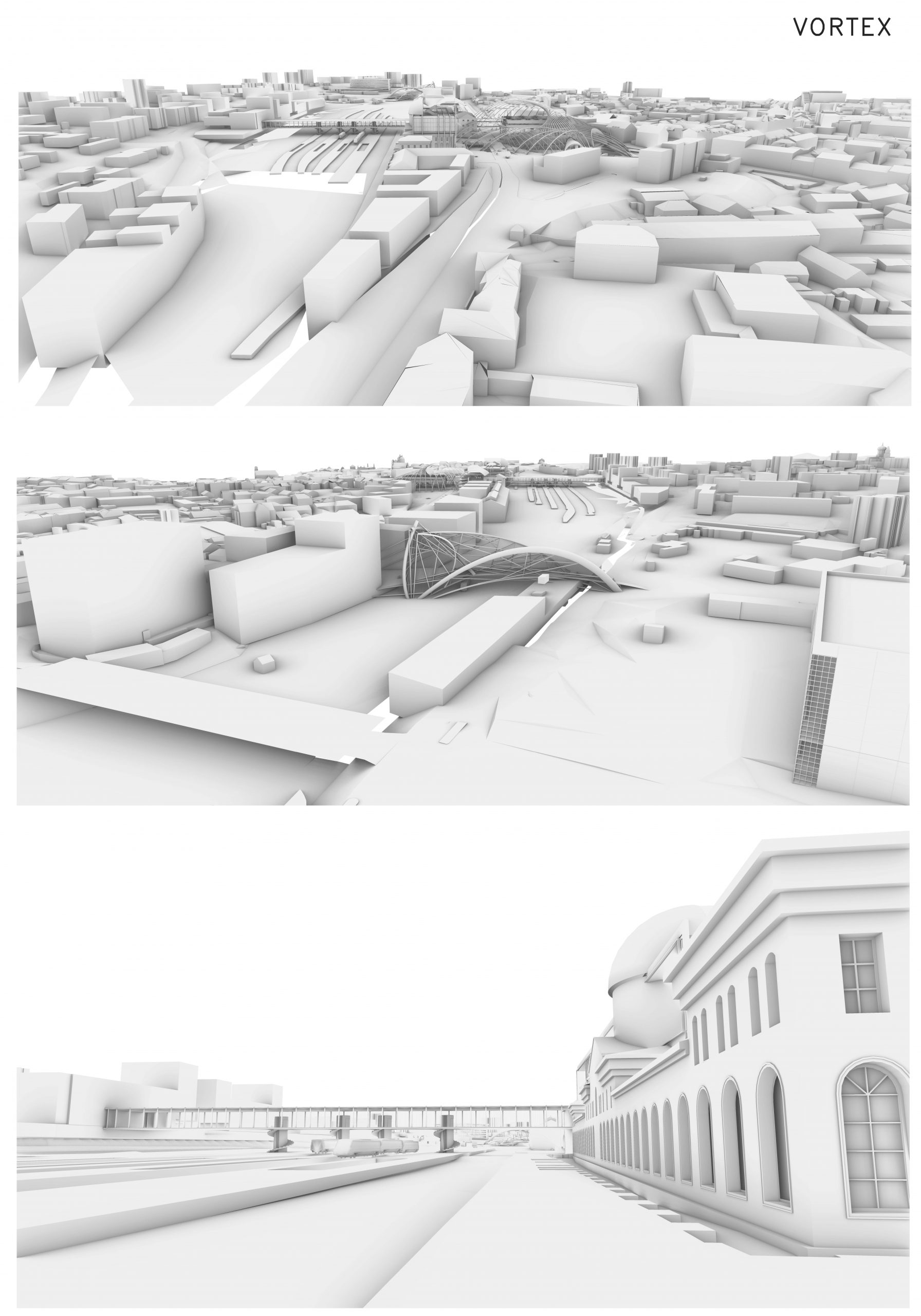 The proposed pedestrian and bicycle bridge over the rail tracks that connects Dzuku and Gelezinkelio streets is vital to establish the link between the Train Station and Naujininkai. The proposed bridge is elaborate and grand in its design to catch the attention of nearby pedestrian traffic as a favorable and safer method of crossing the rail tracks at Svitrigailos Street.